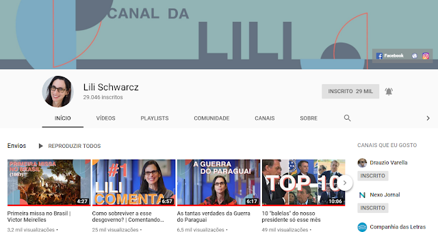 canal da Profª Lili é tão maravilhoso e didático quanto os livros dela. É incrível como a Lilia tem a capacidade de esmiuçar temas complexos de forma tão clara. Para quem não sabe, ela é antropóloga, historiadora e escritora. Tenho profunda admiração não só pelos livros, mas pela paciência com que a Lilia usa dados históricos para esclarecer as bobagens ditas por um certo senhor aí...